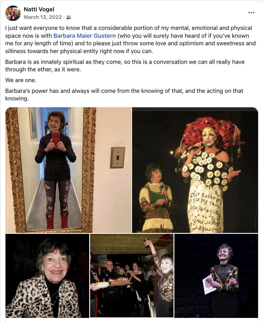 Happy birthday to the legendary, kaleidoscope-hearted, queen of a new and better world, Barbara Maier Gustern.