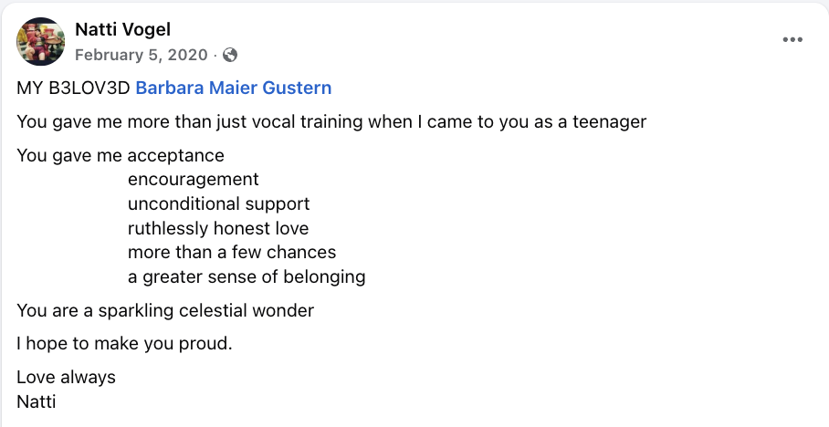 https://www.rollingstone.com/music/music-news/barbara-gustern-vocal-coach-memorial-1327454/